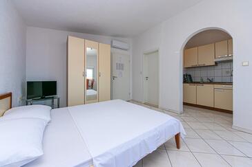 Az Stúdió 2 főt tud fogadni. Az ágyak a/az 1 hálószobában vannak, melynek méretei 25m2. A forró nyári estéket a vendégek saját teraszukon élvezhetik. A stúdióból tengerre néző kilátás nyílik. A közös barbecue-helyet a vendég szabadon használhatja.
