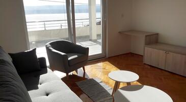 Az Apartman 4 főt tud fogadni. Az ágyak a/az 2 hálószobában vannak, melynek méretei 45m2. A forró nyári estéket a vendégek saját teraszukon élvezhetik. Az apartmanból tengerre néző kilátás nyílik. A közös barbecue-helyet a vendég szabadon használhatja. A lefoglalt szállásegység teraszán áthaladnak más vendégek, vagy a tulajdonosok.