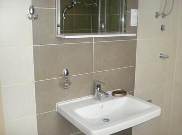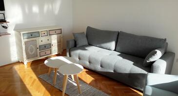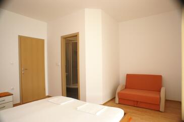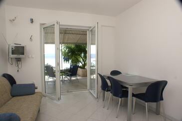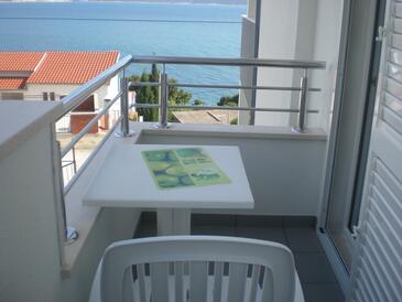 Az Apartman 4 főt tud fogadni. Az ágyak a/az 2 hálószobában vannak, melynek méretei 45m2. A forró nyári estéket a vendégek saját teraszukon élvezhetik. Az apartmanból tengerre néző kilátás nyílik. A közös barbecue-helyet a vendég szabadon használhatja. A lefoglalt szállásegység teraszán áthaladnak más vendégek, vagy a tulajdonosok.