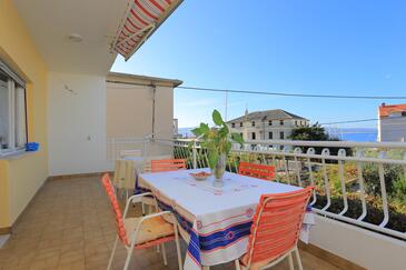 Az Apartman 6 főt tud fogadni. Az ágyak a/az 2 hálószobában, és a nappaliban/ben vannak, melynek méretei 79m2. A forró nyári estéket a vendégek saját teraszukon élvezhetik. Az apartmanból tengerre néző kilátás nyílik. A közös barbecue-helyet a vendég szabadon használhatja. A szállásegységbe lehetséges háziállatot hozni felár ellenében.