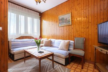 Az Apartman 8 főt tud fogadni. Az ágyak a/az 3 hálószobában vannak, melynek méretei 86m2. A forró nyári estéket a vendégek saját balkonukon élvezhetik. Az apartmanból tengerre néző kilátás nyílik. A közös barbecue-helyet a vendég szabadon használhatja.