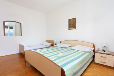Az Apartman 8 főt tud fogadni. Az ágyak a/az 3 hálószobában vannak, melynek méretei 86m2. A forró nyári estéket a vendégek saját balkonukon élvezhetik. Az apartmanból tengerre néző kilátás nyílik. A közös barbecue-helyet a vendég szabadon használhatja.
