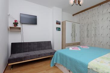 Az Szoba 3 főt tud fogadni. Az ágyak a/az 1 hálószobában vannak, melynek méretei 19m2. Közös konyha használata lehetséges. A szobából tengerre néző kilátás nyílik. A lefoglalt szállásegység szoba, melyhez saját fürdőszoba tartozik, azonban a konyha közös használatú. A közös konyha használatát tartalmazza az ár.. A lefoglalt szállásegység közös teraszt használ..