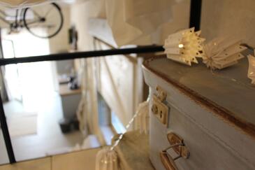 Az Apartman 3 főt tud fogadni. Az ágyak a/az 1 hálószobában, és a nappaliban/ben vannak, melynek méretei 38m2. A forró nyári estéket a vendégek saját teraszukon élvezhetik. Az apartmanból tengerre néző kilátás nyílik. A közös barbecue-helyet a vendég szabadon használhatja. A lefoglalt szállásegység vendégeinek az érkezés napján a helyszínen letétet kell fizetniük (az összeg a honlapon fel van tüntetve).