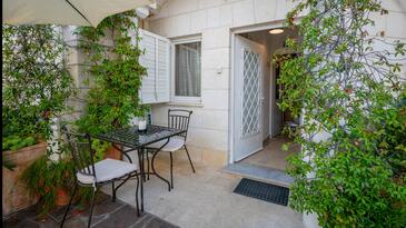 Az Apartman 2 főt tud fogadni. Az ágyak a/az 1 hálószobában vannak, melynek méretei 32m2. A forró nyári estéket a vendégek saját teraszukon élvezhetik. Az apartmanból tengerre néző kilátás nyílik. A közös barbecue-helyet a vendég szabadon használhatja. A vendégek itt tartózkodásuk ideje alatt használhatják a közös medencét. A szállásegységbe lehetséges háziállatot hozni felár ellenében. A lefoglalt szállásegység vendégeinek az érkezés napján a helyszínen letétet kell fizetniük (az összeg a honlapon fel van tüntetve).