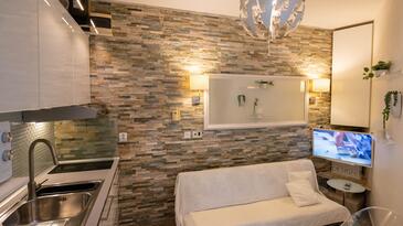 Az Apartman 2 főt tud fogadni. Az ágyak a/az 1 hálószobában vannak, melynek méretei 32m2. A forró nyári estéket a vendégek saját teraszukon élvezhetik. Az apartmanból tengerre néző kilátás nyílik. A közös barbecue-helyet a vendég szabadon használhatja. A vendégek itt tartózkodásuk ideje alatt használhatják a közös medencét. A szállásegységbe lehetséges háziállatot hozni felár ellenében. A lefoglalt szállásegység vendégeinek az érkezés napján a helyszínen letétet kell fizetniük (az összeg a honlapon fel van tüntetve).