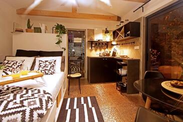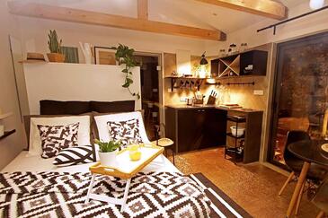 Az Stúdió 2 főt tud fogadni. Az ágyak a/az 1 hálószobában vannak, melynek méretei 20m2. A forró nyári estéket a vendégek saját teraszukon élvezhetik. A stúdióból tengerre néző kilátás nyílik. A közös barbecue-helyet a vendég szabadon használhatja. A vendégek itt tartózkodásuk ideje alatt használhatják a közös medencét. A szállásegységbe lehetséges háziállatot hozni felár ellenében. A lefoglalt szállásegység vendégeinek az érkezés napján a helyszínen letétet kell fizetniük (az összeg a honlapon fel van tüntetve).