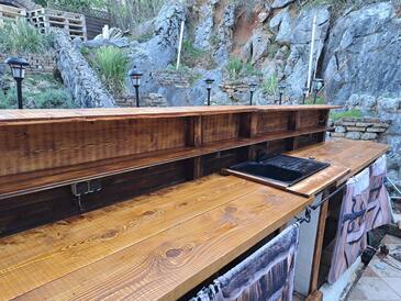 Az Ház 12 főt tud fogadni. Az ágyak a/az 5 hálószobában vannak, melynek méretei 234m2. A forró nyári estéket a vendégek saját teraszukon élvezhetik. A házból tengerre néző kilátás nyílik. A teljes élvezet és kikapcsolódás érdekében van saját barbecue hely is, csakis e szálláshely vendégei számára. A vendégek itt tartózkodásuk ideje alatt kikapcsolódás céljából használhatják a magán medencét. A szállásegységbe lehetséges háziállatot hozni, ennek költségét a foglalási díj tartalmazza.