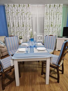 Az Apartman 5 főt tud fogadni. Az ágyak a/az 2 hálószobában, és a nappaliban/ben vannak, melynek méretei 65m2. A forró nyári estéket a vendégek saját teraszukon élvezhetik. A közös barbecue-helyet a vendég szabadon használhatja. A lefoglalt szállásegység vendégeinek az érkezés napján a helyszínen letétet kell fizetniük (az összeg a honlapon fel van tüntetve).