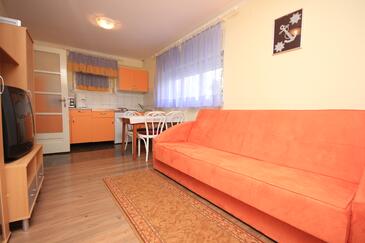 Az Apartman 4 főt tud fogadni. Az ágyak a/az 1 hálószobában, és a nappaliban/ben vannak, melynek méretei 35m2. A forró nyári estéket a vendégek saját teraszukon élvezhetik. A közös barbecue-helyet a vendég szabadon használhatja. A szállásegységbe lehetséges háziállatot hozni felár ellenében.