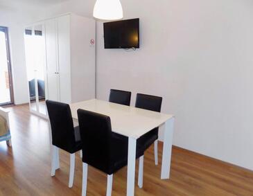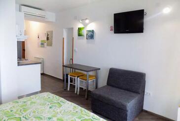 Az Apartman 3 főt tud fogadni. Az ágyak a/az 1 hálószobában, és a nappaliban/ben vannak, melynek méretei 31m2. A forró nyári estéket a vendégek saját teraszukon élvezhetik. Az apartmanból tengerre néző kilátás nyílik. A közös barbecue-helyet a vendég szabadon használhatja.