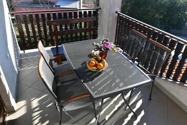 Az Apartman 4 főt tud fogadni. Az ágyak a/az 2 hálószobában vannak, melynek méretei 73m2. A forró nyári estéket a vendégek saját teraszukon élvezhetik. Az apartmanból tengerre néző kilátás nyílik. A közös barbecue-helyet a vendég szabadon használhatja. A szállásegység nincsen ajtóval elválasztva az objektum többi helyiségétől.