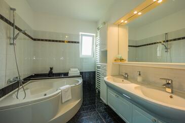 Az Apartman 6 főt tud fogadni. Az ágyak a/az 2 hálószobában, és a nappaliban/ben vannak, melynek méretei 102m2. A forró nyári estéket a vendégek saját teraszukon élvezhetik. Az apartmanból tengerre néző kilátás nyílik. A közös barbecue-helyet a vendég szabadon használhatja. A vendégek itt tartózkodásuk ideje alatt használhatják a közös medencét.