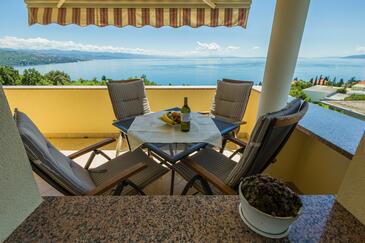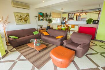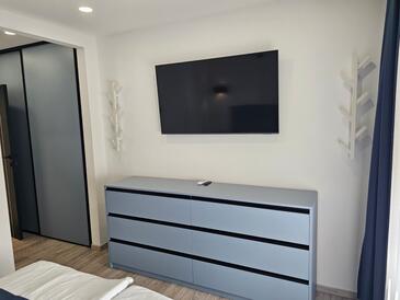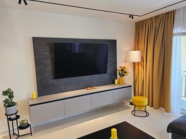 Az Apartman 6 főt tud fogadni. Az ágyak a/az 2 hálószobában, és a nappaliban/ben vannak, melynek méretei 102m2. A forró nyári estéket a vendégek saját teraszukon élvezhetik. Az apartmanból tengerre néző kilátás nyílik. A közös barbecue-helyet a vendég szabadon használhatja. A vendégek itt tartózkodásuk ideje alatt használhatják a közös medencét.