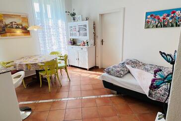 Az Apartman 4 főt tud fogadni. Az ágyak a/az 1 hálószobában, és a nappaliban/ben vannak, melynek méretei 36m2. A forró nyári estéket a vendégek saját balkonukon élvezhetik. Az apartmanból tengerre néző kilátás nyílik.