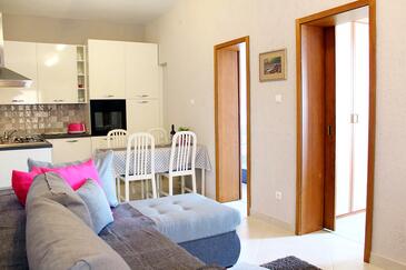 Az Apartman 5 főt tud fogadni. Az ágyak a/az 2 hálószobában, és a nappaliban/ben vannak, melynek méretei 38m2. A forró nyári estéket a vendégek saját teraszukon élvezhetik. Az apartmanból tengerre néző kilátás nyílik. A közös barbecue-helyet a vendég szabadon használhatja. A szállásegységbe lehetséges háziállatot hozni felár ellenében.