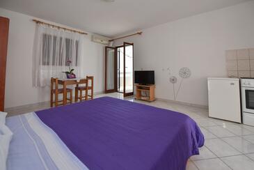 Az Apartman 4 főt tud fogadni. Az ágyak a/az 2 hálószobában vannak, melynek méretei 56m2. A forró nyári estéket a vendégek saját teraszukon élvezhetik. Az apartmanból tengerre néző kilátás nyílik. A közös barbecue-helyet a vendég szabadon használhatja. A szállásegységbe lehetséges háziállatot hozni felár ellenében.