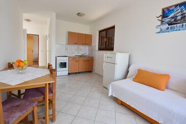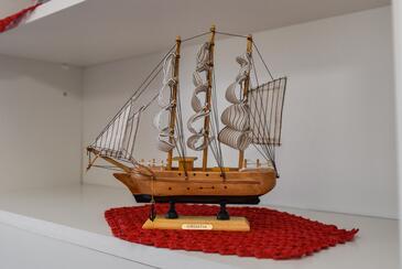Az Apartman 4 főt tud fogadni. Az ágyak a/az 2 hálószobában vannak, melynek méretei 56m2. A forró nyári estéket a vendégek saját teraszukon élvezhetik. Az apartmanból tengerre néző kilátás nyílik. A közös barbecue-helyet a vendég szabadon használhatja. A szállásegységbe lehetséges háziállatot hozni felár ellenében.