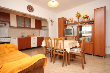 Az Apartman 8 főt tud fogadni. Az ágyak a/az 3 hálószobában vannak, melynek méretei 97m2. A forró nyári estéket a vendégek saját teraszukon élvezhetik. Az apartmanból tengerre néző kilátás nyílik. A közös barbecue-helyet a vendég szabadon használhatja. A lefoglalt szállásegység vendégeinek az érkezés napján a helyszínen letétet kell fizetniük (az összeg a honlapon fel van tüntetve).