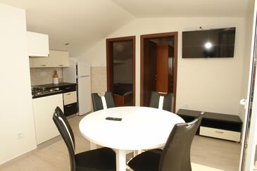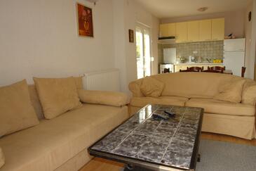 Az Apartman 4 főt tud fogadni. Az ágyak a/az 1 hálószobában, és a étkezőban/ben vannak, melynek méretei 28m2. A forró nyári estéket a vendégek saját teraszukon élvezhetik. Az apartmanból tengerre néző kilátás nyílik. A szállásegységbe lehetséges háziállatot hozni felár ellenében.