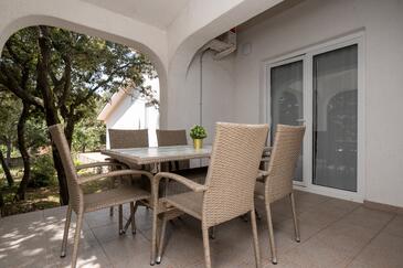 Az Apartman 4 főt tud fogadni. Az ágyak a/az 2 hálószobában vannak, melynek méretei 34m2. A forró nyári estéket a vendégek saját teraszukon élvezhetik. A közös barbecue-helyet a vendég szabadon használhatja. A szállásegységbe lehetséges háziállatot hozni, ennek költségét a foglalási díj tartalmazza.
