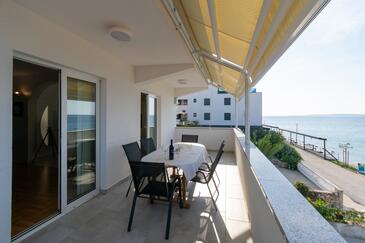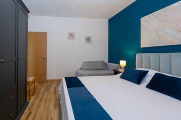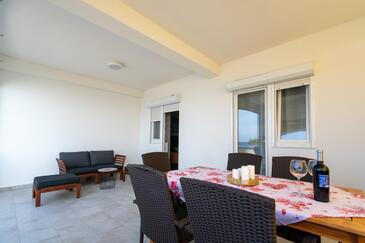 Az Apartman 6 főt tud fogadni. Az ágyak a/az 2 hálószobában vannak, melynek méretei 56m2. A forró nyári estéket a vendégek saját teraszukon élvezhetik. Az apartmanból tengerre néző kilátás nyílik. A közös barbecue-helyet a vendég szabadon használhatja. A szállásegységbe lehetséges háziállatot hozni felár ellenében.