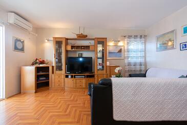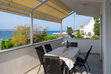 Az Apartman 6 főt tud fogadni. Az ágyak a/az 2 hálószobában vannak, melynek méretei 56m2. A forró nyári estéket a vendégek saját teraszukon élvezhetik. Az apartmanból tengerre néző kilátás nyílik. A közös barbecue-helyet a vendég szabadon használhatja. A szállásegységbe lehetséges háziállatot hozni felár ellenében.