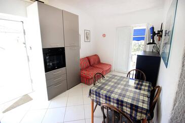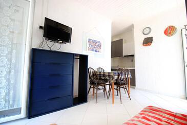 Az Apartman 4 főt tud fogadni. Az ágyak a/az 1 hálószobában, és a nappaliban/ben vannak, melynek méretei 26m2. A forró nyári estéket a vendégek saját teraszukon élvezhetik. Az apartmanból tengerre néző kilátás nyílik. A közös barbecue-helyet a vendég szabadon használhatja. A szállásegységbe lehetséges háziállatot hozni felár ellenében.