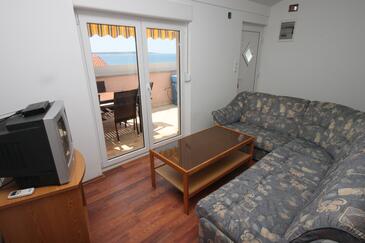 Az Apartman 6 főt tud fogadni. Az ágyak a/az 2 hálószobában, és a nappaliban/ben vannak, melynek méretei 50m2. A forró nyári estéket a vendégek saját teraszukon élvezhetik. Az apartmanból tengerre néző kilátás nyílik. A közös barbecue-helyet a vendég szabadon használhatja.