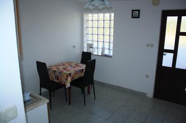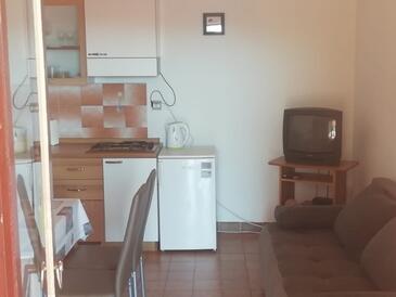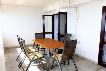 Az Apartman 4 főt tud fogadni. Az ágyak a/az 1 hálószobában, és a étkezőban/ben vannak, melynek méretei 28m2. A forró nyári estéket a vendégek saját teraszukon élvezhetik. Az apartmanból tengerre néző kilátás nyílik. A közös barbecue-helyet a vendég szabadon használhatja. A szállásegységbe lehetséges háziállatot hozni, ennek költségét a foglalási díj tartalmazza.