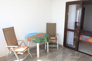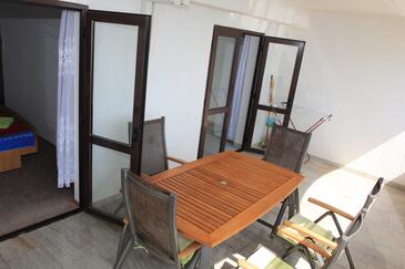 Az Apartman 4 főt tud fogadni. Az ágyak a/az 1 hálószobában, és a étkezőban/ben vannak, melynek méretei 28m2. A forró nyári estéket a vendégek saját teraszukon élvezhetik. Az apartmanból tengerre néző kilátás nyílik. A közös barbecue-helyet a vendég szabadon használhatja. A szállásegységbe lehetséges háziállatot hozni, ennek költségét a foglalási díj tartalmazza.