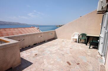Az Apartman 6 főt tud fogadni. Az ágyak a/az 2 hálószobában vannak, melynek méretei 44m2. A forró nyári estéket a vendégek saját teraszukon élvezhetik. Az apartmanból tengerre néző kilátás nyílik. A közös barbecue-helyet a vendég szabadon használhatja.