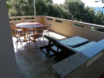 Az Apartman 4 főt tud fogadni. Az ágyak a/az 2 hálószobában vannak, melynek méretei 44m2. A forró nyári estéket a vendégek saját teraszukon élvezhetik. Az apartmanból tengerre néző kilátás nyílik. A közös barbecue-helyet a vendég szabadon használhatja. A szállásegységbe lehetséges háziállatot hozni, ennek költségét a foglalási díj tartalmazza.