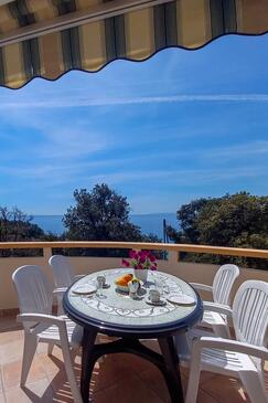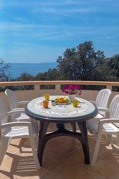 Az Apartman 6 főt tud fogadni. Az ágyak a/az 2 hálószobában vannak, melynek méretei 53m2. A forró nyári estéket a vendégek saját teraszukon élvezhetik. Az apartmanból tengerre néző kilátás nyílik. A közös barbecue-helyet a vendég szabadon használhatja.