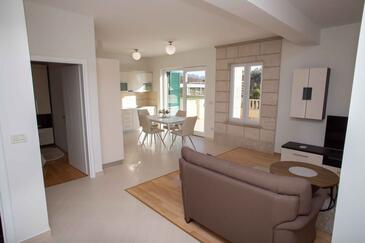 Az Apartman 6 főt tud fogadni. Az ágyak a/az 2 hálószobában, és a nappaliban/ben vannak, melynek méretei 80m2. A forró nyári estéket a vendégek saját teraszukon élvezhetik. Az apartmanból tengerre néző kilátás nyílik. A közös barbecue-helyet a vendég szabadon használhatja. A vendégek itt tartózkodásuk ideje alatt használhatják a közös medencét.