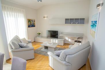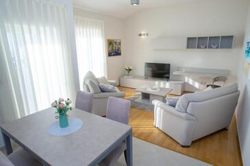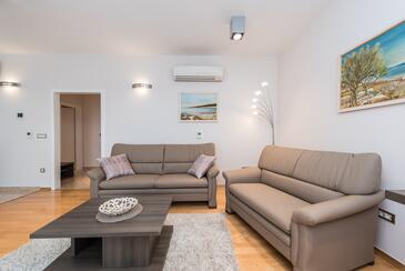 Az Apartman 4 főt tud fogadni. Az ágyak a/az 1 hálószobában, és a nappaliban/ben vannak, melynek méretei 63m2. A forró nyári estéket a vendégek saját teraszukon élvezhetik. Az apartmanból tengerre néző kilátás nyílik. A közös barbecue-helyet a vendég szabadon használhatja. A vendégek itt tartózkodásuk ideje alatt használhatják a közös medencét.