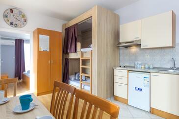 Az Apartman 4 főt tud fogadni. Az ágyak a/az 1 hálószobában, és a étkezőban/ben vannak, melynek méretei 27m2. A szállásegységbe lehetséges háziállatot hozni felár ellenében. A lefoglalt szállásegységhez nem tartozik erkély vagy terasz.. A lefoglalt szállásegység vendégeinek az érkezés napján a helyszínen letétet kell fizetniük (az összeg a honlapon fel van tüntetve).
