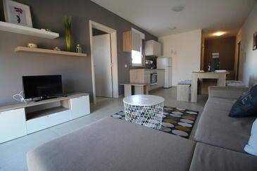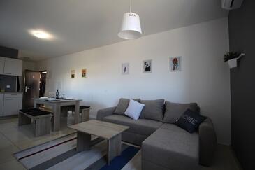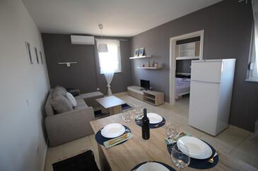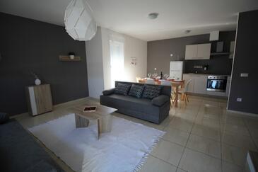 Az Apartman 4 főt tud fogadni. Az ágyak a/az 1 hálószobában, és a nappaliban/ben vannak, melynek méretei 30m2. A közös barbecue-helyet a vendég szabadon használhatja. A lefoglalt szállásegységhez nem tartozik erkély vagy terasz..