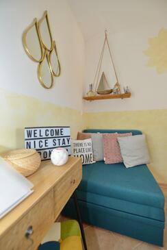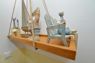 Az Apartman 4 főt tud fogadni. Az ágyak a/az 2 hálószobában vannak, melynek méretei 40m2. A forró nyári estéket a vendégek saját balkonukon élvezhetik. Az apartmanból tengerre néző kilátás nyílik.