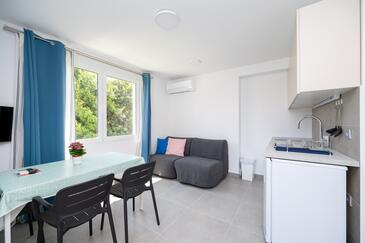 Az Apartman 3 főt tud fogadni. Az ágyak a/az 1 hálószobában, és a nappaliban/ben vannak, melynek méretei 32m2. A forró nyári estéket a vendégek saját teraszukon élvezhetik. A közös barbecue-helyet a vendég szabadon használhatja.