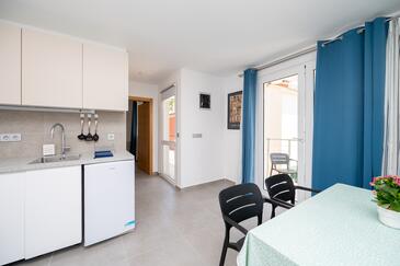 Az Apartman 3 főt tud fogadni. Az ágyak a/az 1 hálószobában, és a nappaliban/ben vannak, melynek méretei 32m2. A forró nyári estéket a vendégek saját teraszukon élvezhetik. A közös barbecue-helyet a vendég szabadon használhatja.