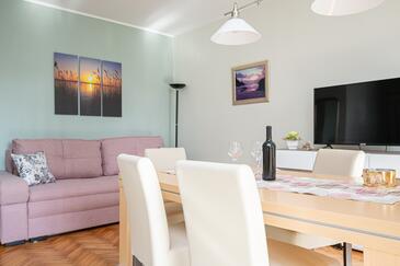 Az Apartman 6 főt tud fogadni. Az ágyak a/az 2 hálószobában, és a nappaliban/ben vannak, melynek méretei 49m2. A forró nyári estéket a vendégek saját teraszukon élvezhetik. A teljes élvezet és kikapcsolódás érdekében van saját barbecue hely is, csakis e szálláshely vendégei számára. A lefoglalt szállásegység vendégeinek az érkezés napján a helyszínen letétet kell fizetniük (az összeg a honlapon fel van tüntetve).
