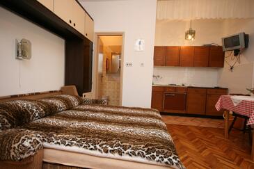 Az Apartman 8 főt tud fogadni. Az ágyak a/az 2 hálószobában, és a étkezőban/ben vannak, melynek méretei 53m2. A forró nyári estéket a vendégek saját teraszukon élvezhetik. Az apartmanból tengerre néző kilátás nyílik. A közös barbecue-helyet a vendég szabadon használhatja. A szállásegységbe lehetséges háziállatot hozni felár ellenében. A lefoglalt szállásegység vendégeinek az érkezés napján a helyszínen letétet kell fizetniük (az összeg a honlapon fel van tüntetve).