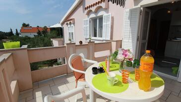 Az Apartman 5 főt tud fogadni. Az ágyak a/az 2 hálószobában, és a étkezőban/ben vannak, melynek méretei 42m2. A forró nyári estéket a vendégek saját teraszukon élvezhetik. A közös barbecue-helyet a vendég szabadon használhatja. A szállásegységbe lehetséges háziállatot hozni felár ellenében. A lefoglalt szállásegység vendégeinek az érkezés napján a helyszínen letétet kell fizetniük (az összeg a honlapon fel van tüntetve).
