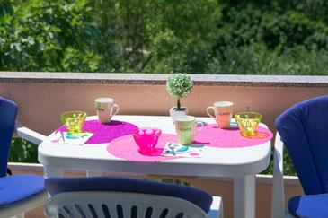Az Apartman 5 főt tud fogadni. Az ágyak a/az 2 hálószobában, és a étkezőban/ben vannak, melynek méretei 42m2. A forró nyári estéket a vendégek saját teraszukon élvezhetik. A közös barbecue-helyet a vendég szabadon használhatja. A szállásegységbe lehetséges háziállatot hozni felár ellenében. A lefoglalt szállásegység vendégeinek az érkezés napján a helyszínen letétet kell fizetniük (az összeg a honlapon fel van tüntetve).