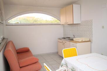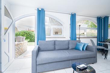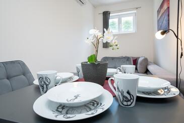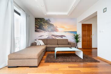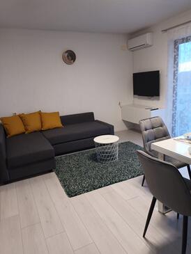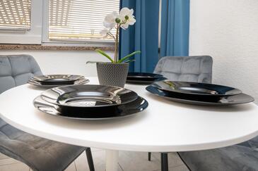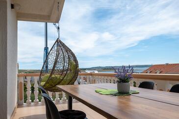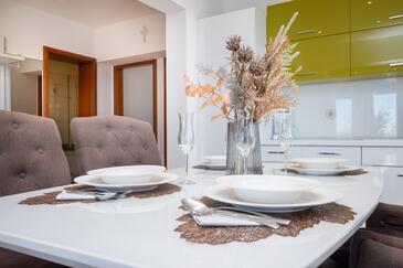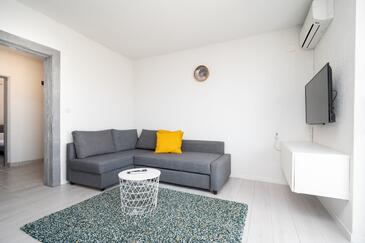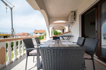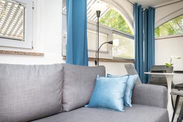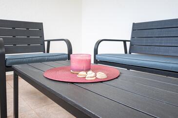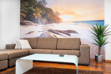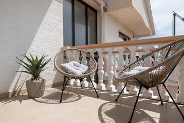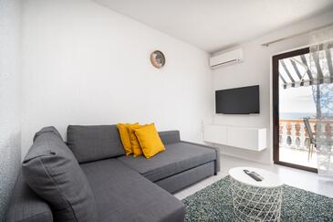Az Apartman 6 főt tud fogadni. Az ágyak a/az 2 hálószobában, és a nappaliban/ben vannak, melynek méretei 48m2. A forró nyári estéket a vendégek saját teraszukon élvezhetik. Az apartmanból tengerre néző kilátás nyílik. A közös barbecue-helyet a vendég szabadon használhatja.