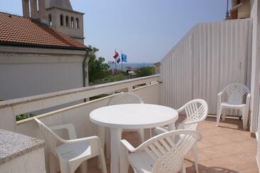 Az Apartman 6 főt tud fogadni. Az ágyak a/az 2 hálószobában, és a étkezőban/ben vannak, melynek méretei 44m2. A forró nyári estéket a vendégek saját teraszukon élvezhetik. Az apartmanból tengerre néző kilátás nyílik. A közös barbecue-helyet a vendég szabadon használhatja. A szállásegységbe lehetséges háziállatot hozni felár ellenében.