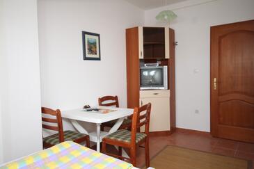 Az Apartman 4 főt tud fogadni. Az ágyak a/az 1 hálószobában, és a nappaliban/ben vannak, melynek méretei 37m2. A forró nyári estéket a vendégek saját teraszukon élvezhetik. Az apartmanból tengerre néző kilátás nyílik. A közös barbecue-helyet a vendég szabadon használhatja. A szállásegységbe lehetséges háziállatot hozni felár ellenében.