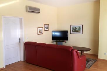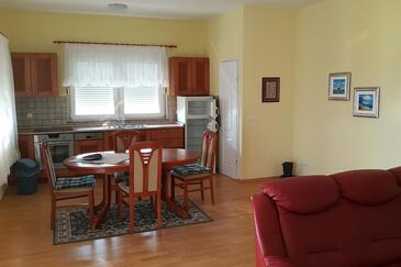 Az Apartman 4 főt tud fogadni. Az ágyak a/az 2 hálószobában vannak, melynek méretei 71m2. A forró nyári estéket a vendégek saját teraszukon élvezhetik. Az apartmanból tengerre néző kilátás nyílik. A közös barbecue-helyet a vendég szabadon használhatja.
