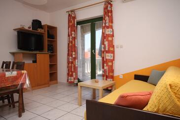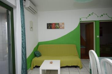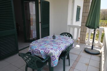 Az Apartman 6 főt tud fogadni. Az ágyak a/az 2 hálószobában, és a nappaliban/ben vannak, melynek méretei 43m2. A forró nyári estéket a vendégek saját teraszukon élvezhetik. Az apartmanból tengerre néző kilátás nyílik. A közös barbecue-helyet a vendég szabadon használhatja. A szállásegységbe lehetséges háziállatot hozni, ennek költségét a foglalási díj tartalmazza.